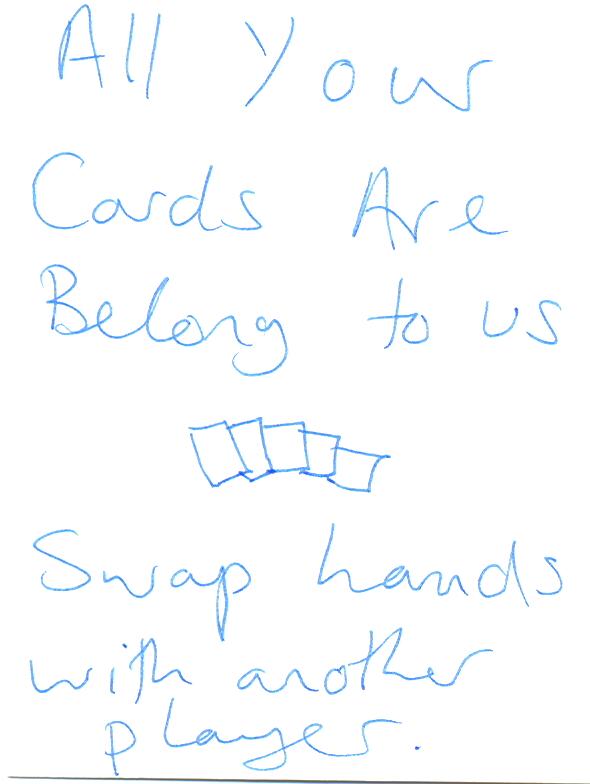 200 points | Swap one card with each player every turn at the end of the round * *Unless Pavlov's Dog is in play |