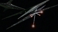 Furik speaks to the press, claiming credit for the earlier success against the Cylons and causing sparks to fly with Darius. It becomes clear that there are other sources of strife as Stanton, promoted to XO of the Myriad, clashes with now-displaced Captain Zetes. The greater priority, however, is locating resources for repairs, doubly challenging because the CAG is out of action and all pilots trained to fly the Gryphon – the Myriad’s prototype stealth recon ship – were killed in the battle.