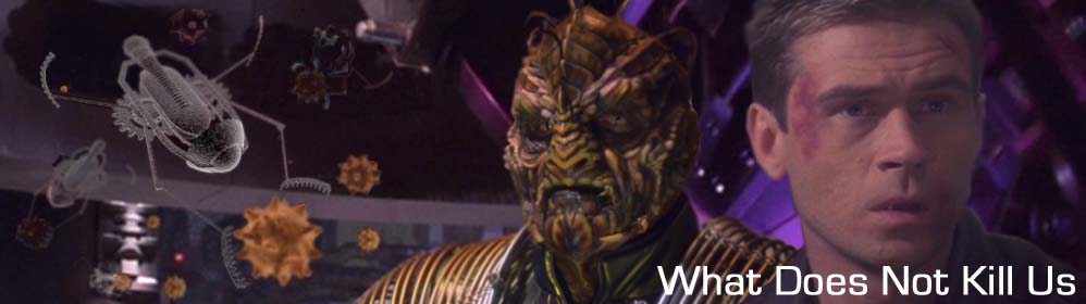 Reed looked around the lab. He fired his phase rifle at the contents of the lab benches until he was satisfied that all traces of the red nanoprobes were gone. Trip’s blood sample that Ven Dath had taken was amongst the casualties. “Come on let’s get out of here.”